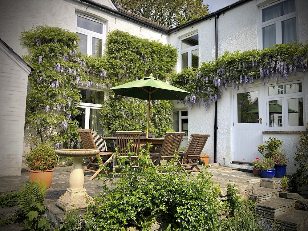 Summer House looking towards the house and countryside beyond
